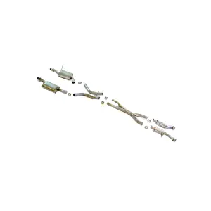 Cat-back bolt-on performance exhaust system for improved flow, sound and overall performance. Made from 304 stainless steel for corrosion resistance. Stainless steel band-style clamps provide tight seals and make installation easy. Includes four-inch polished tips.