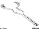 High performance, bolt-on, cat-back exhaust system with mirror polished 304 stainless steel. A non-valved, no-nonsense, purist's performance exhaust system.