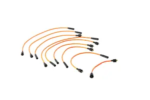 Just like O.E., carbon suppression wires are manufactured in the right color with the right lettering and each includes the correct spark plug boot. Set contains eight ignition secondary wires and one coil wire.
